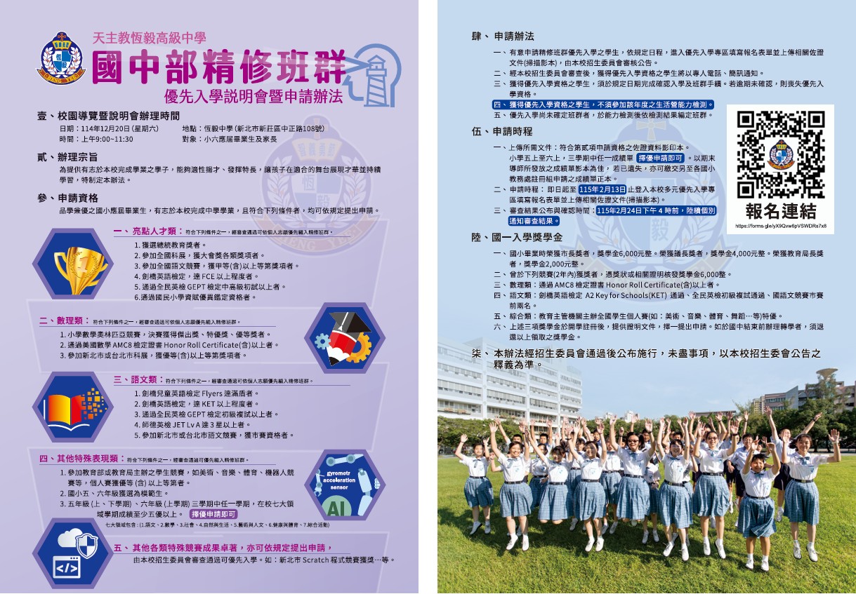 轉知新北市恆毅中學國中部優先入學說明會暨申請辦法